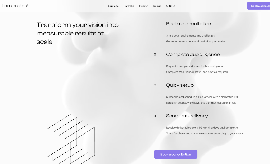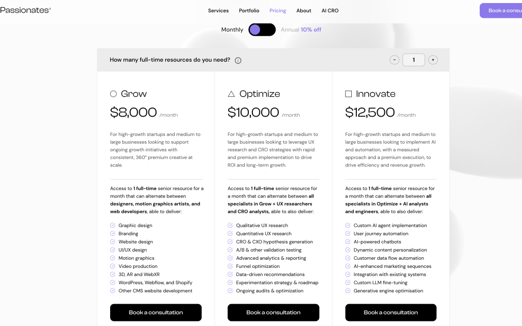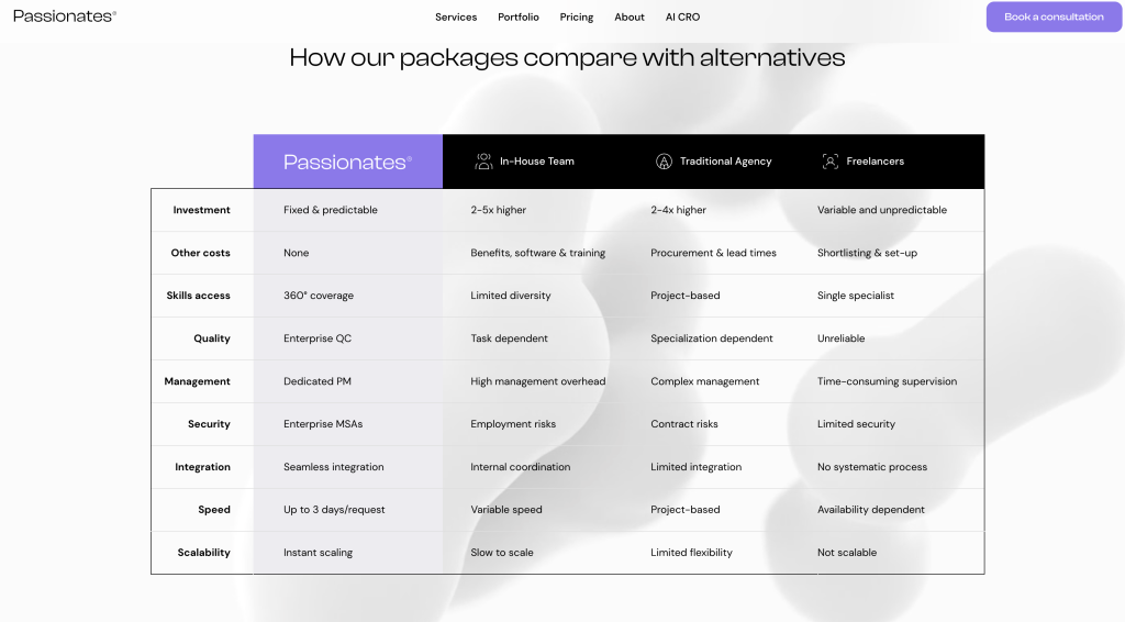 First to use Clutch as their reviews (not heard of them before). One of the few to add a ‘book consultation’ on their site. Passionates are charging $200 per hour on ad-hoc basis. In fact their overall service is about renting out senior resources to larger companies, which isn’t a bad idea actually… The competition for low cost webdev is so low that positioning yourself at higher amounts leads to the value perception premium. Banner for email capture for keeping up to date with online business and AI news is good. First active blog to be talking about ChatGPT prompts. So these guys are more targeted at the enterprise market, with premium targeting. Really interesting. They also have developed a tool called crolytics.ai … which I will have a look at another day!