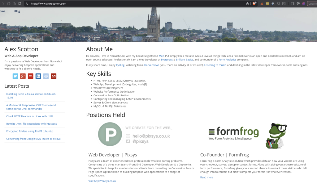I know Alex well and have worked on several projects with him over last few years. He runs NorfolkDevelopers which has great hoodies and a conference that will keep you well fed and intrigued each year. He is slightly better than me in that he actually has a website … but the last blog post was 2014. Alex is phenomenal at developing web applications but like me finds it difficult to find the energy and time to put into his own website. But what a wonderful website it is 🙂